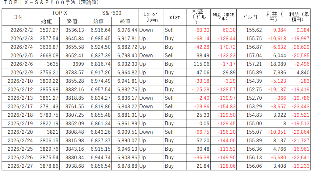 3. 2026年2月のTOPIX-S&P500手法(理論値)